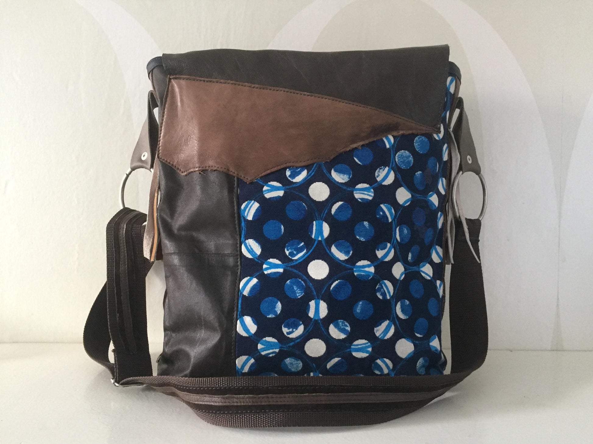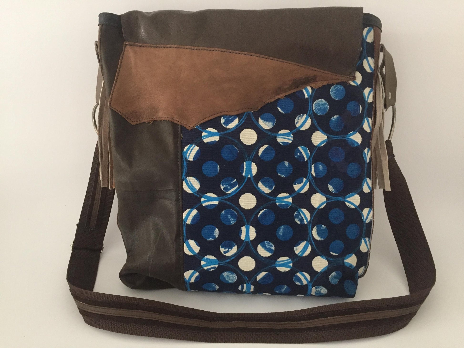 Denim Schoudertas met Leer VanStoel#170 BRUIN BLAUW