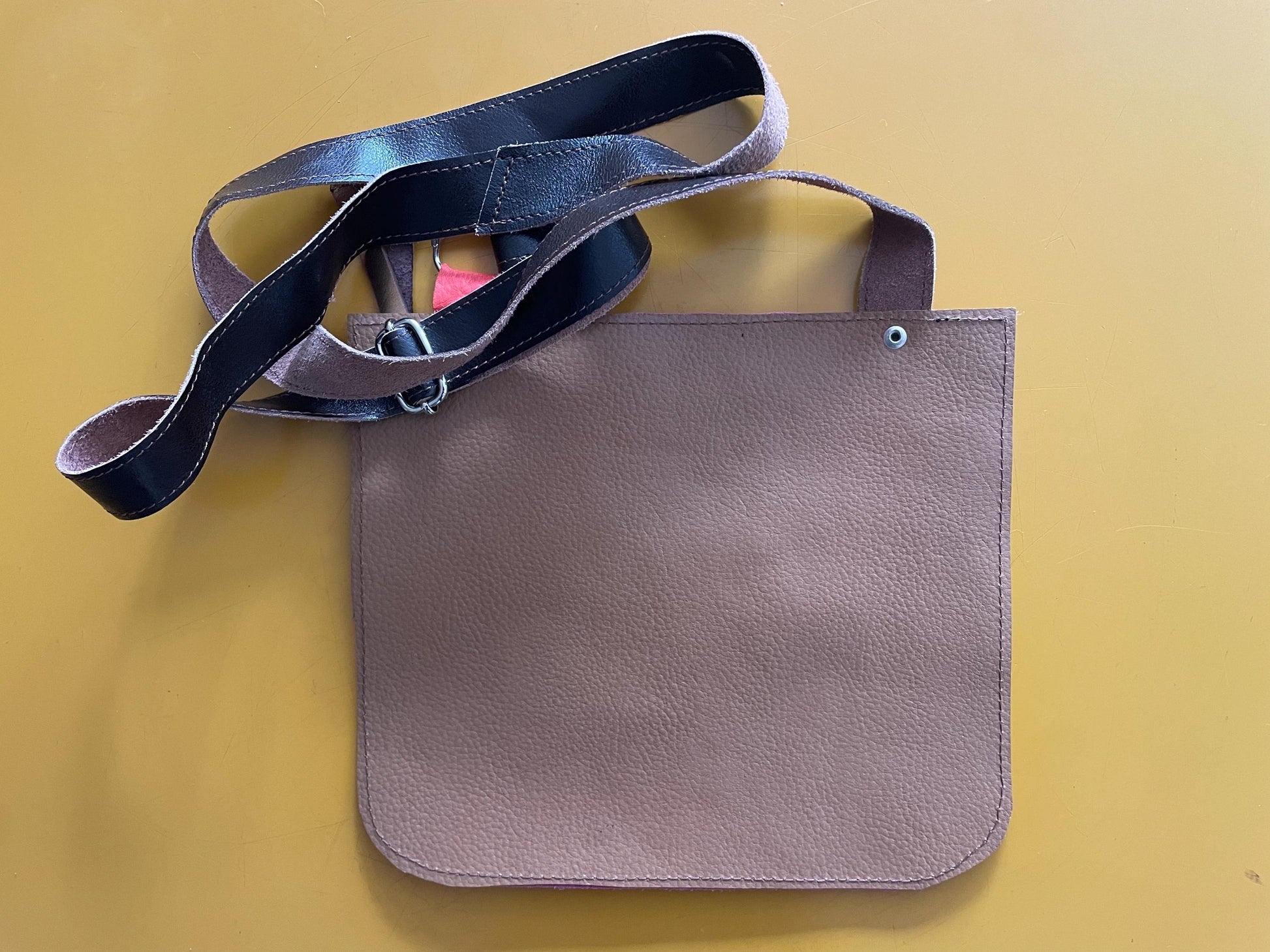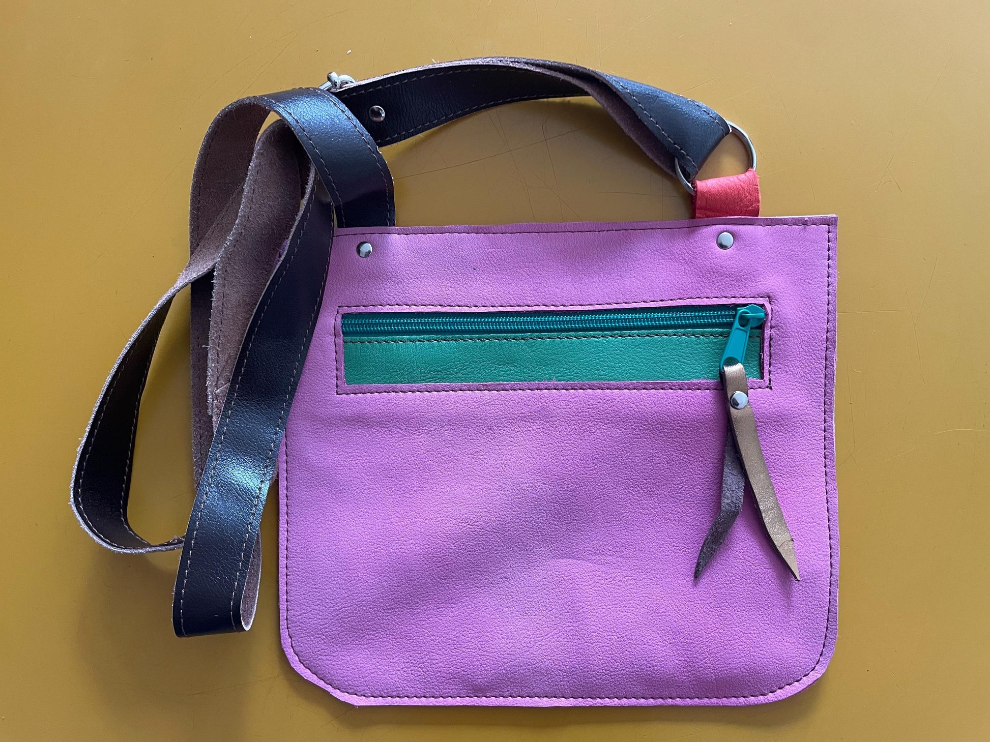Festival tasje VanStoel#298 Roze op groen en groene rits | Licht bruin