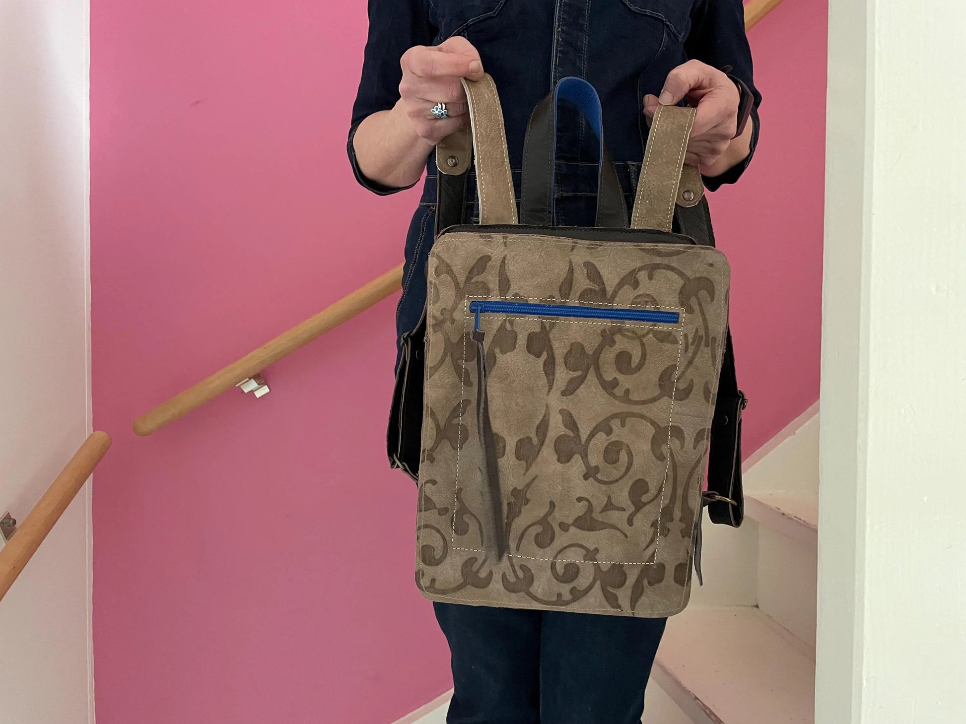 Leren Rugzak VanStoel#337 BRUIN MOTIEF | Handgemaakt van HERGEBRUIKT leer | duurzaam is beter