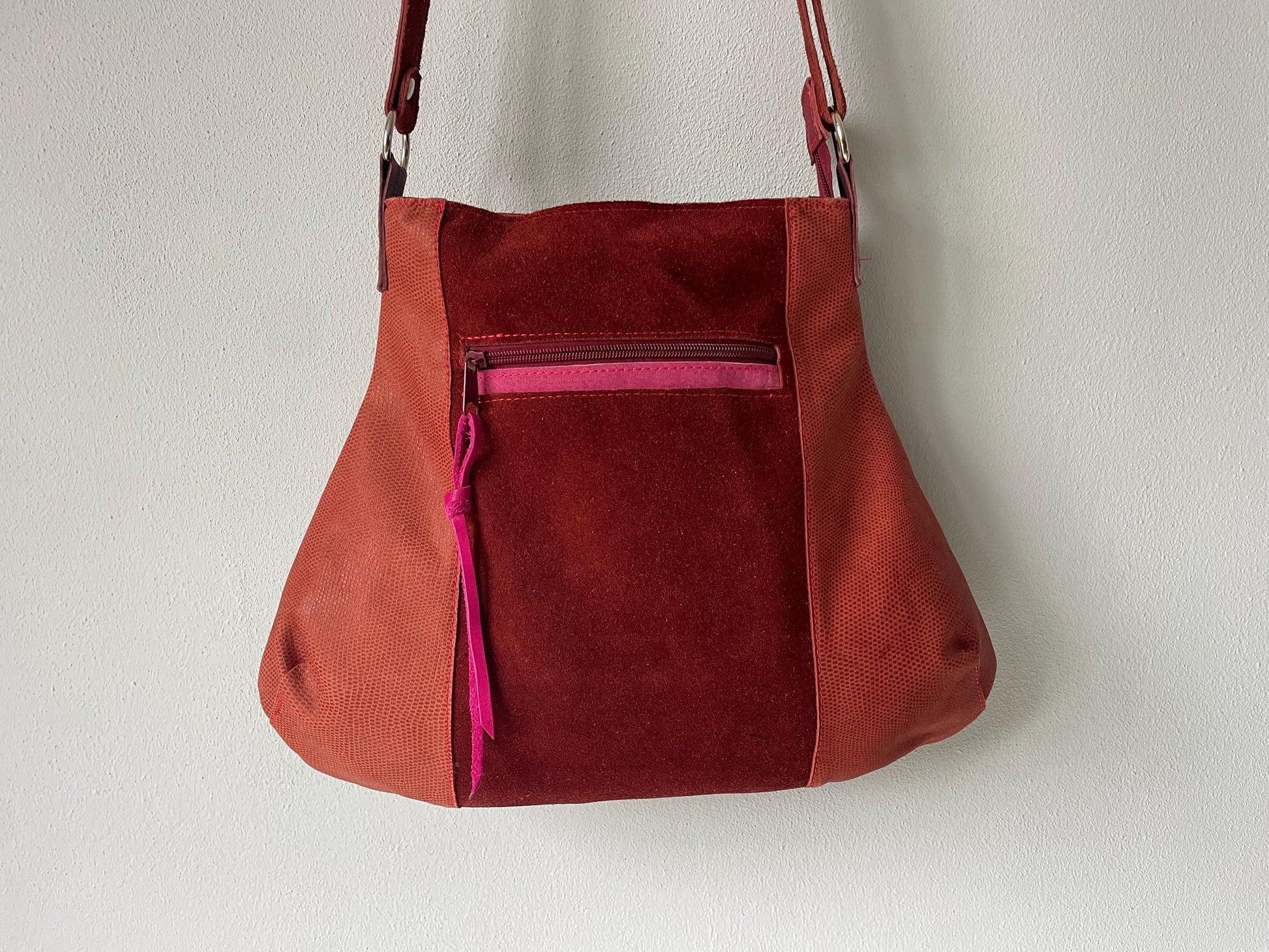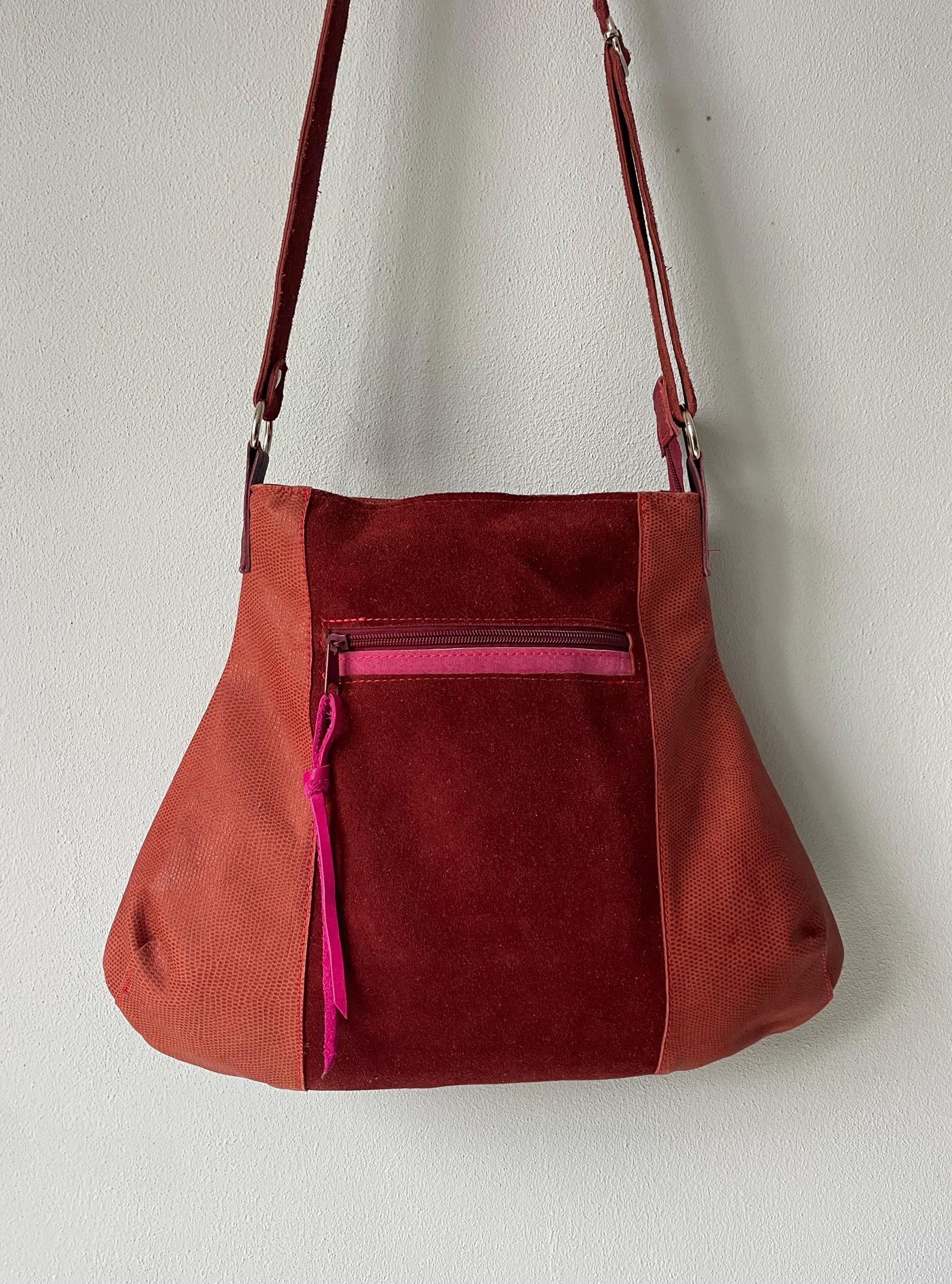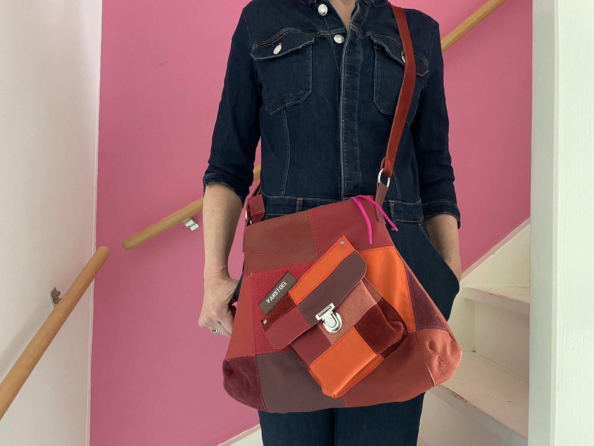Patchwork Schoudertas van Leer VanStoel#322 ROOD ORANJE