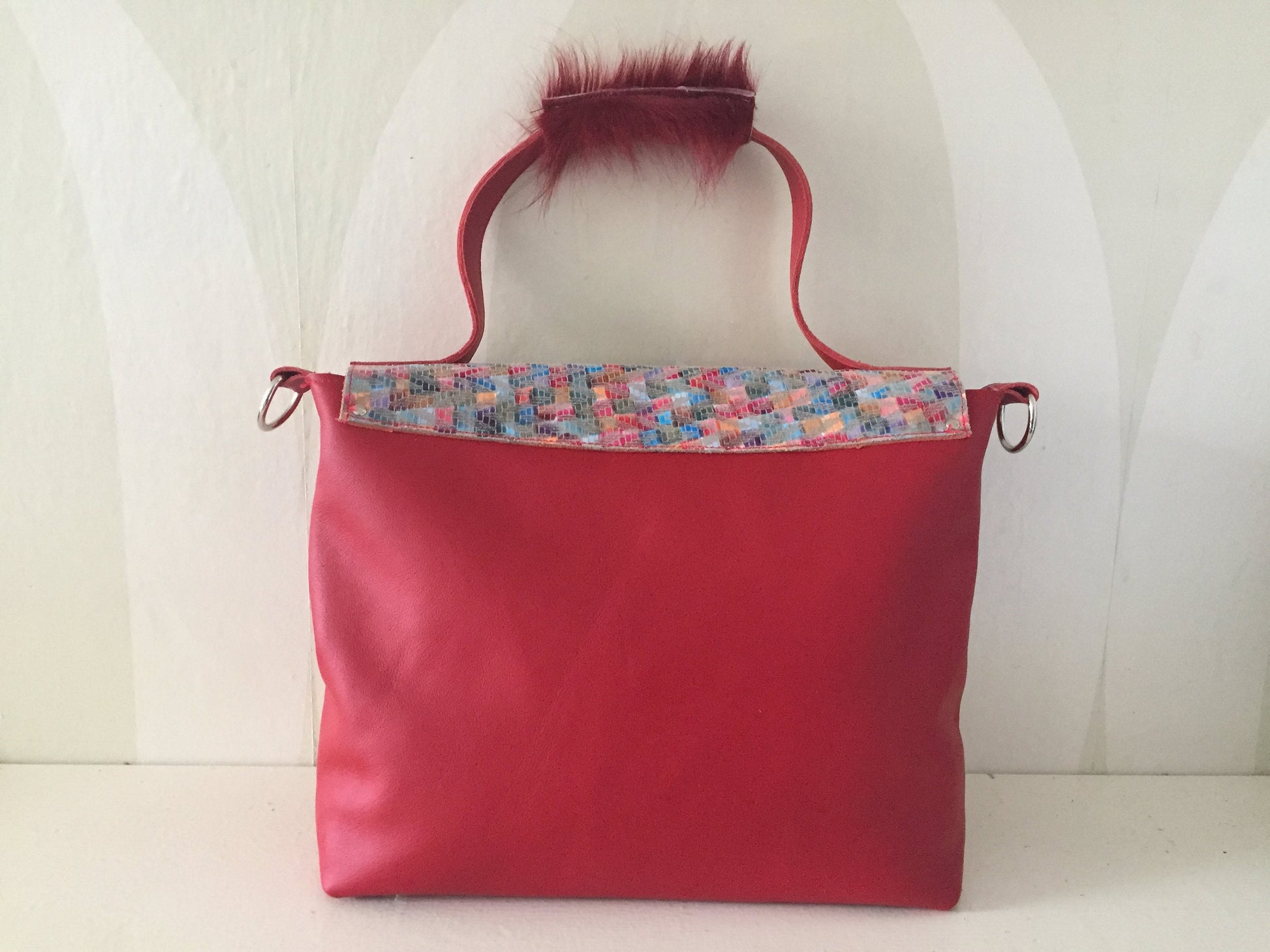 Schoudertas Handtas van Leer met Klep VanStoel#319 ROOD MULTICOLOR | Handgemaakt van HERGEBRUIKT leer | duurzaam is beter