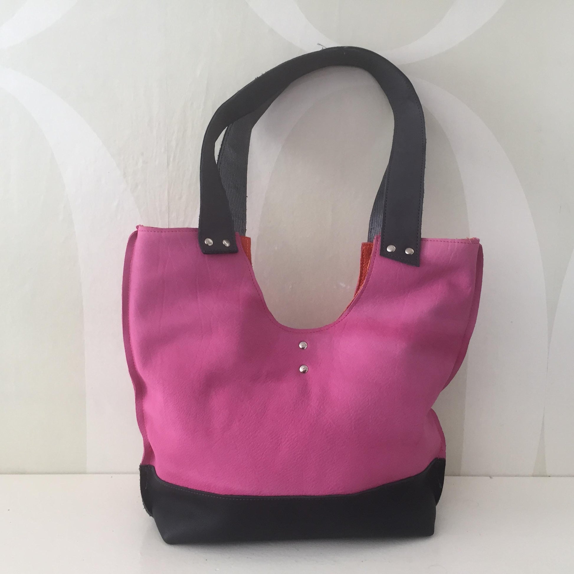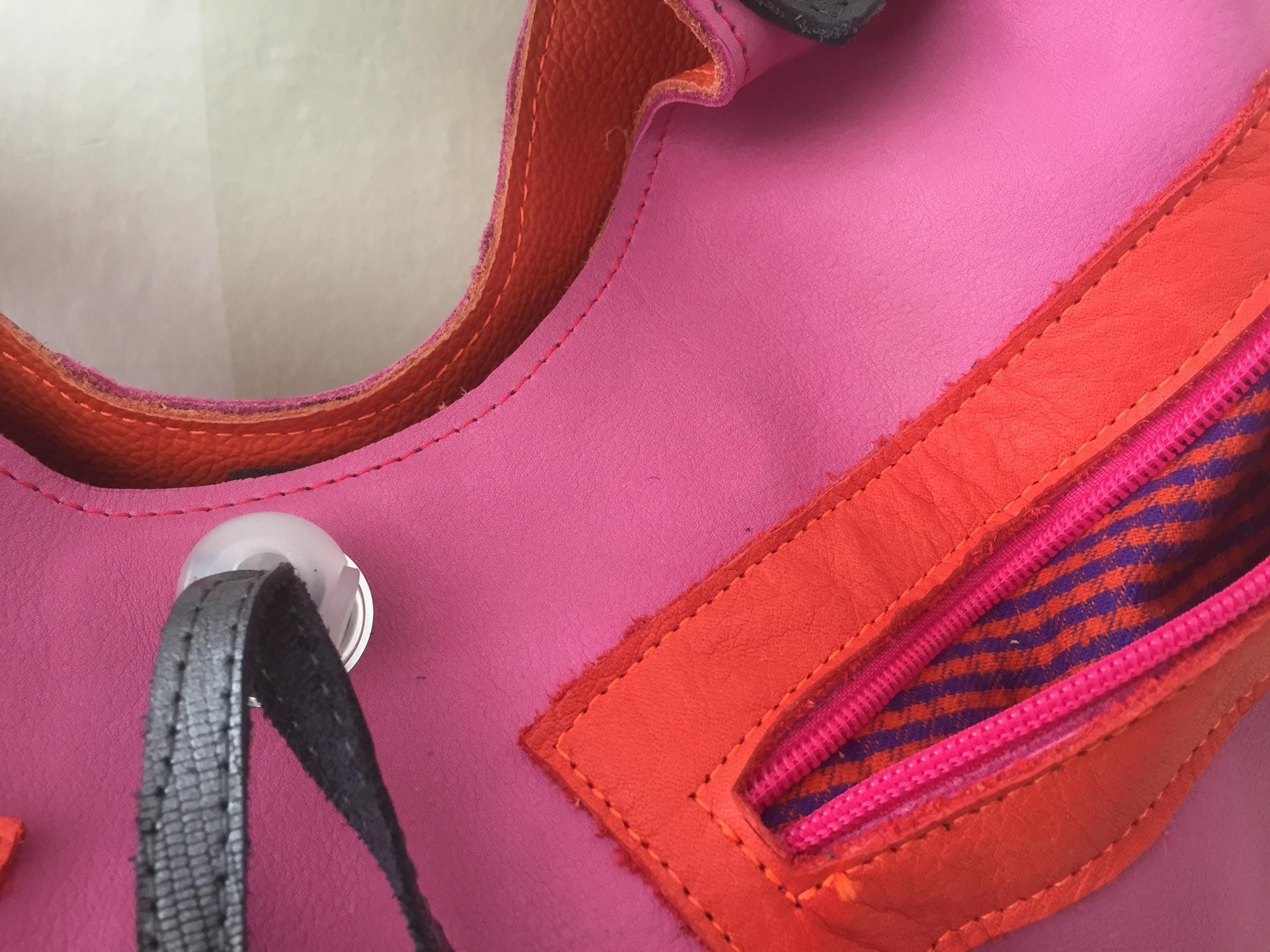 Schoudertas van Leer VanStoel#255 ROZE ZWART