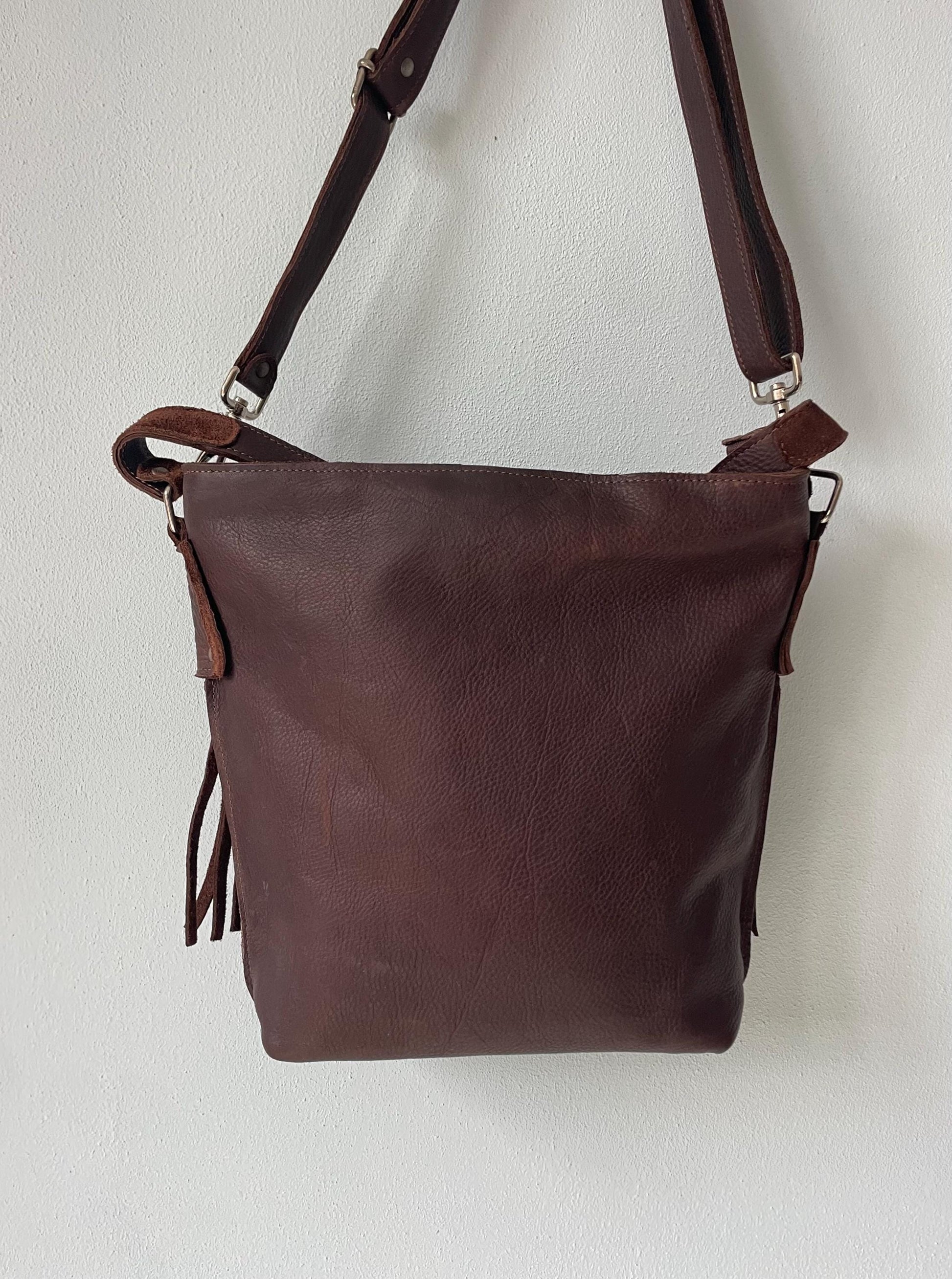 Schoudertas van Leer VanStoel#292 DONKER BRUIN | Handgemaakt van HERGEBRUIKT leer | duurzaam is beter