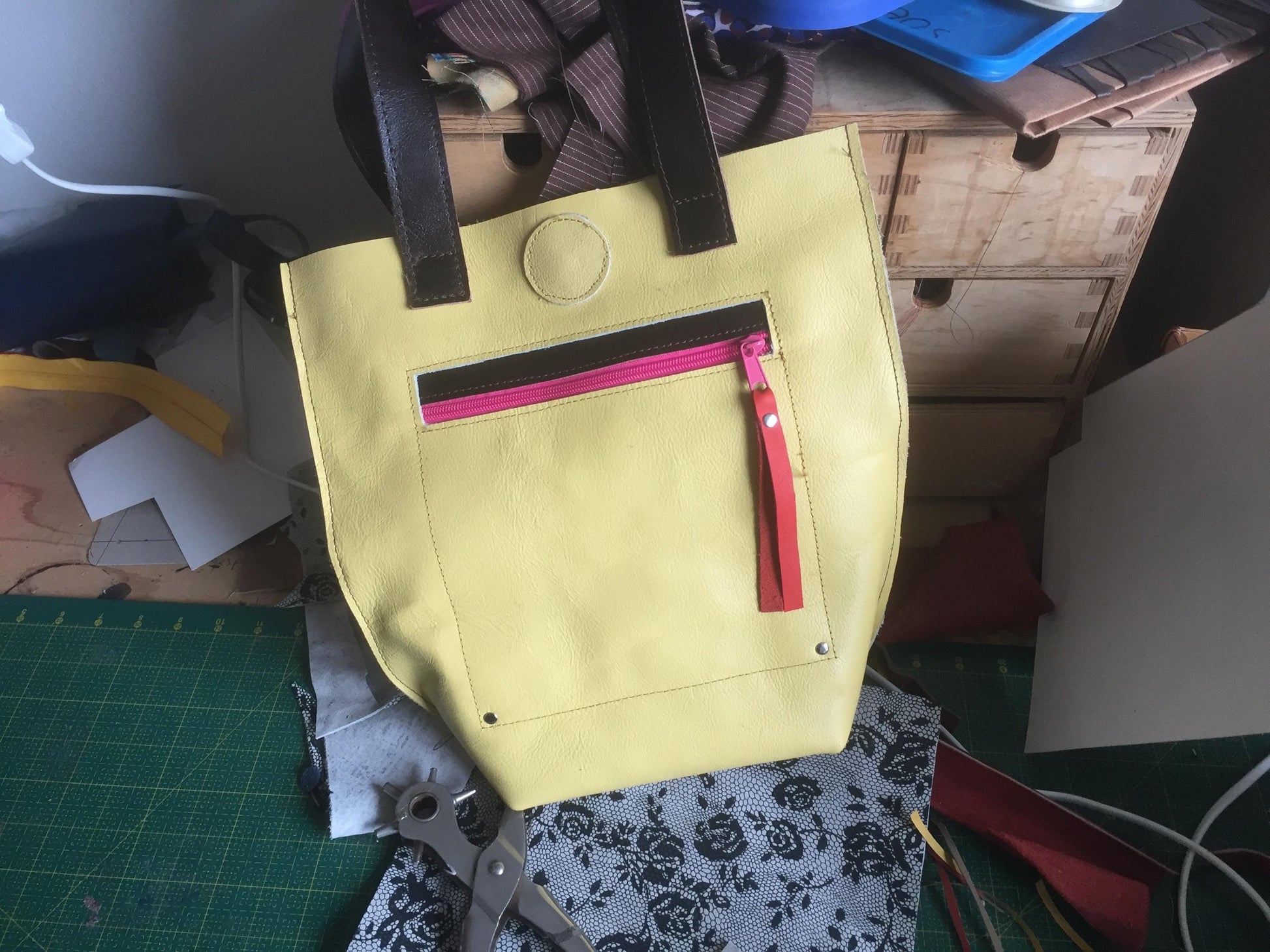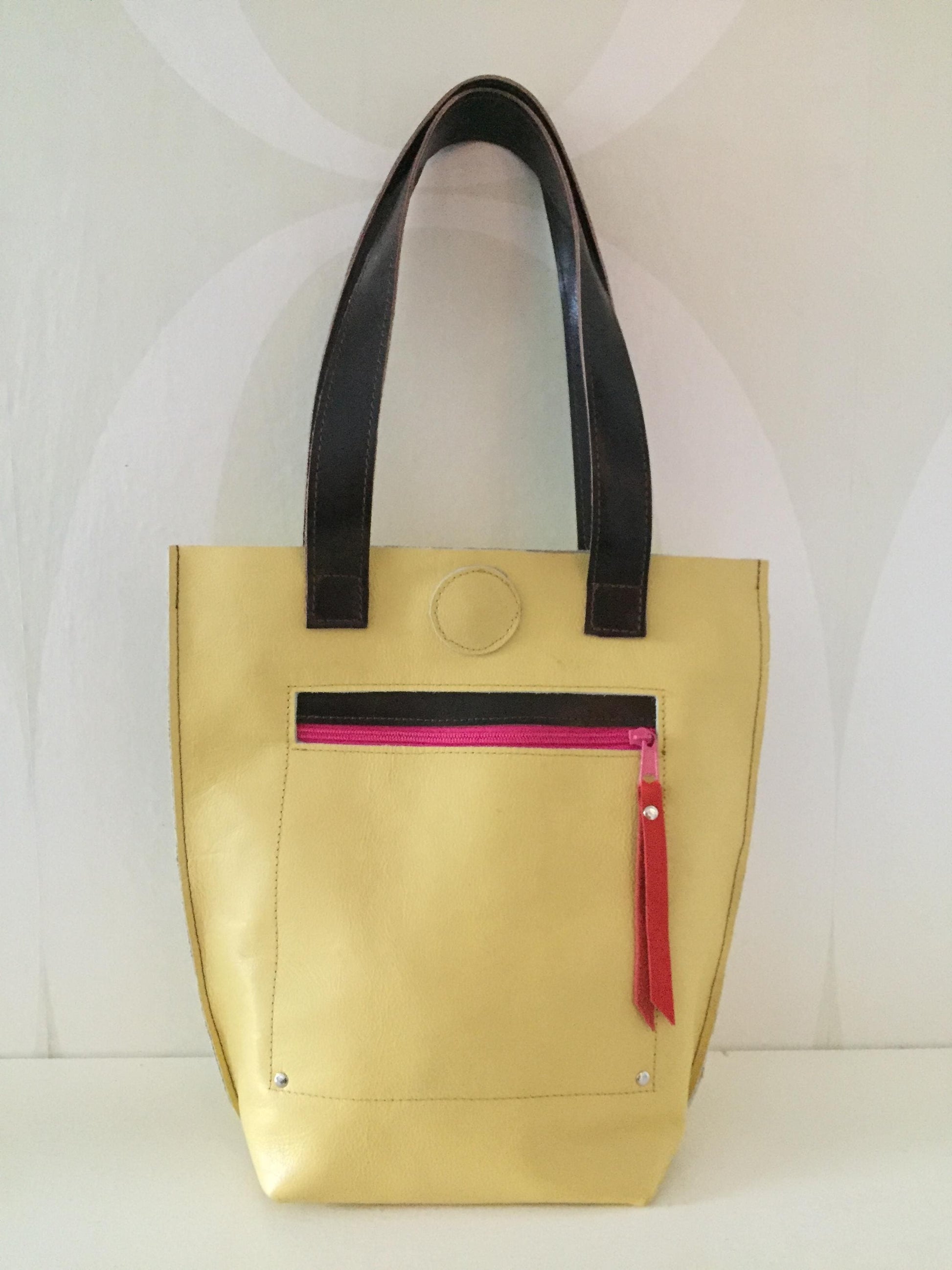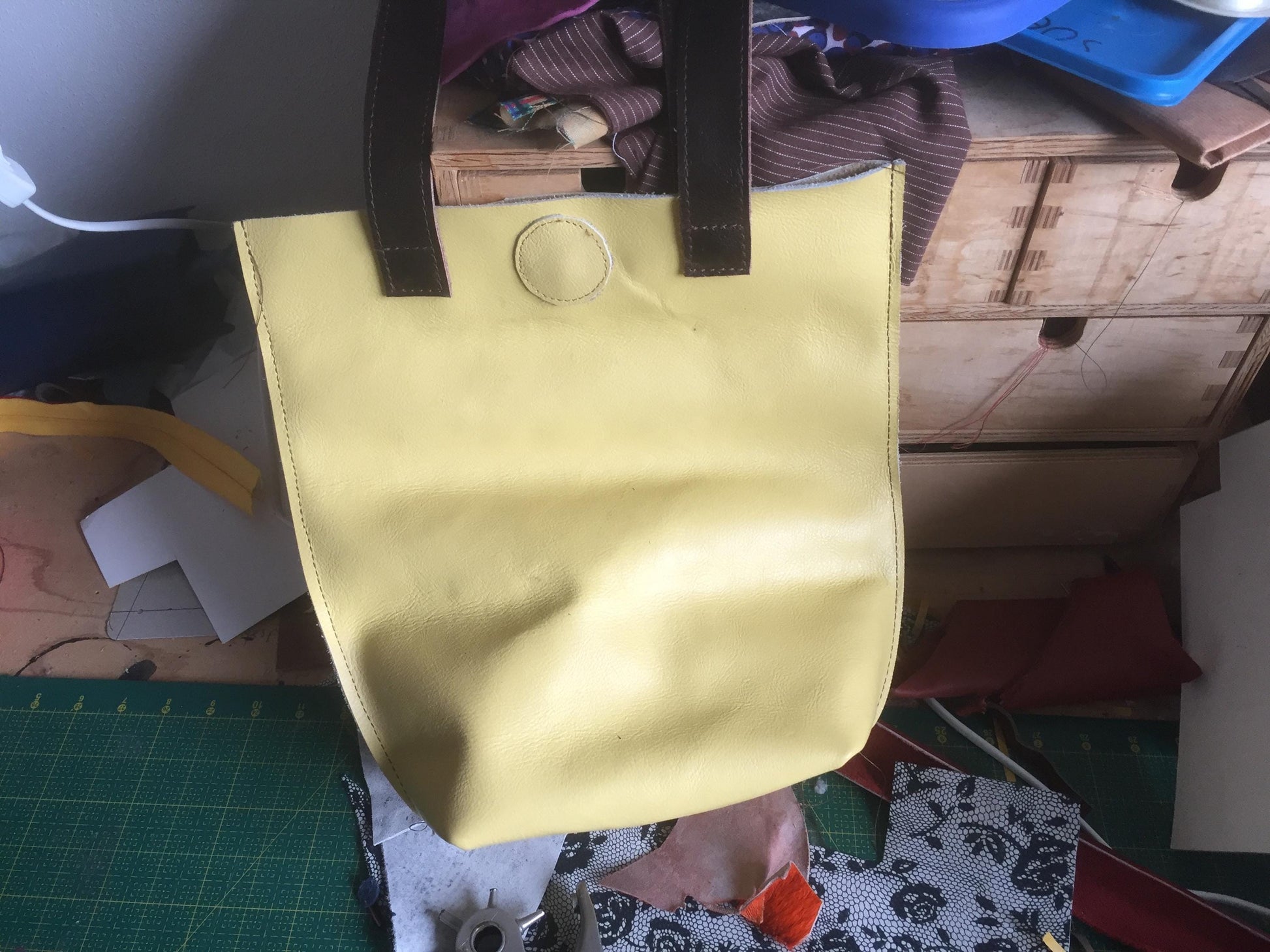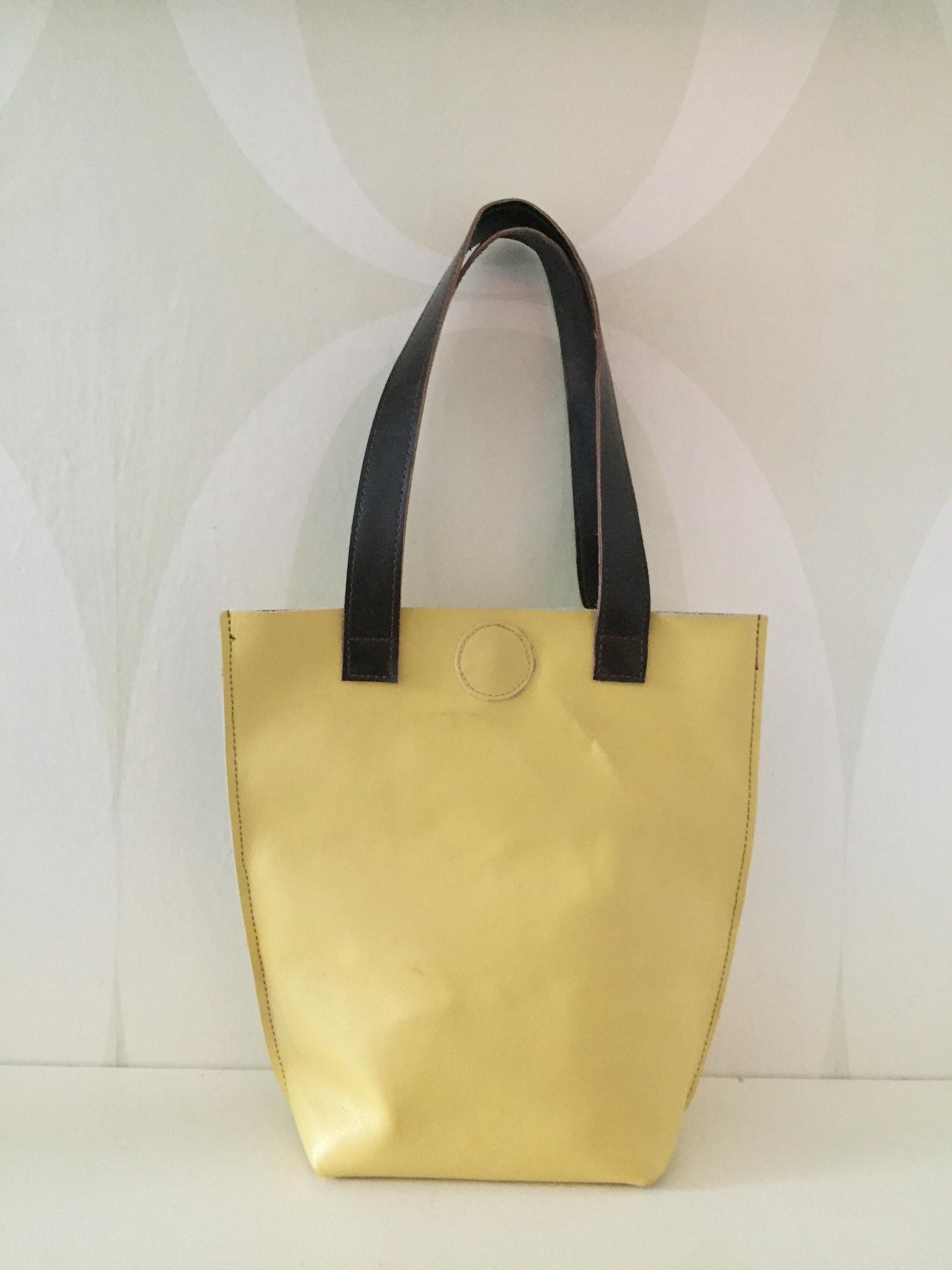 Stevige Kleine Shopper van Leer VanStoel#274 GEEL | Handgemaakt van HERGEBRUIKT leer | duurzaam is beter
