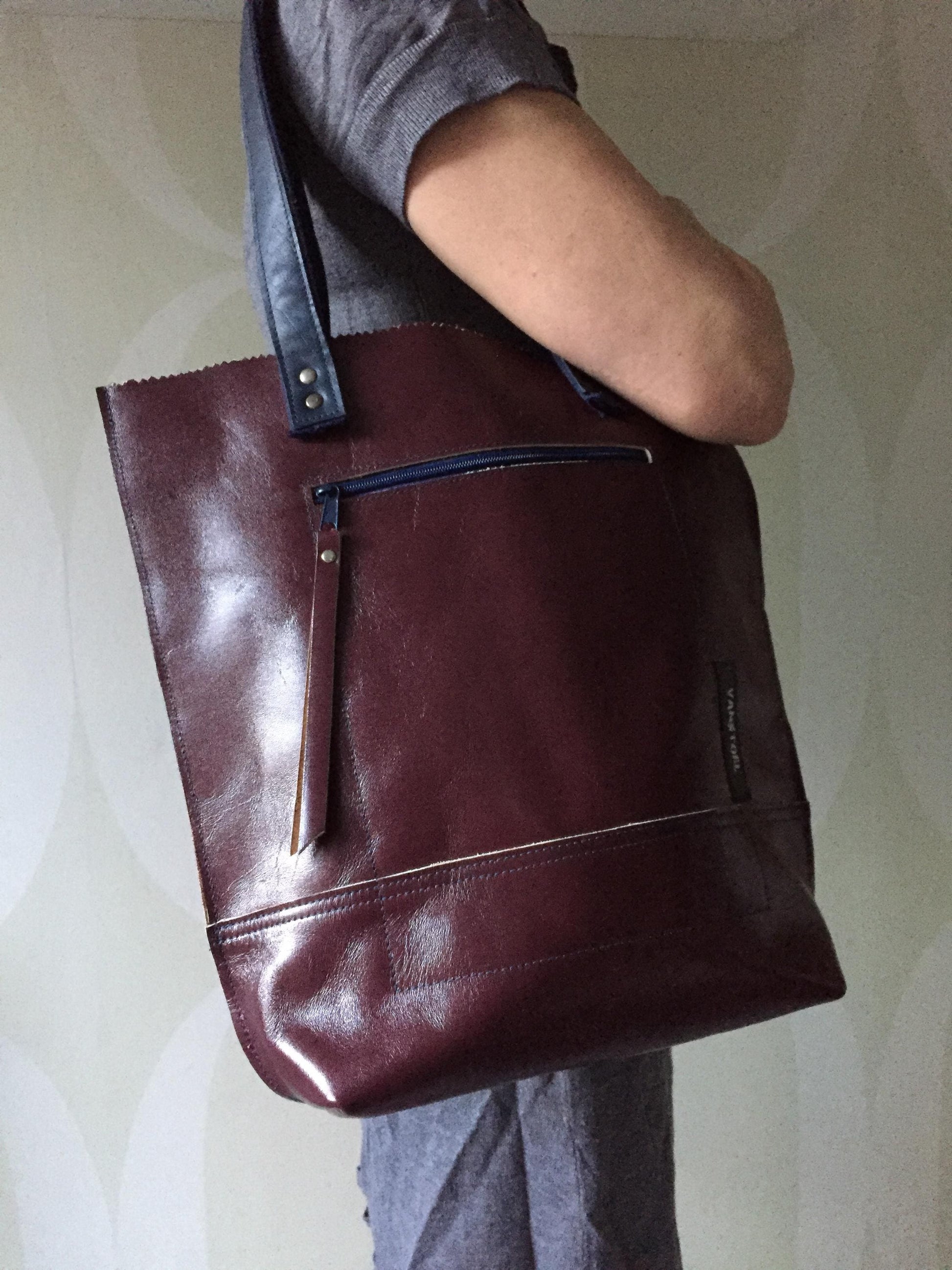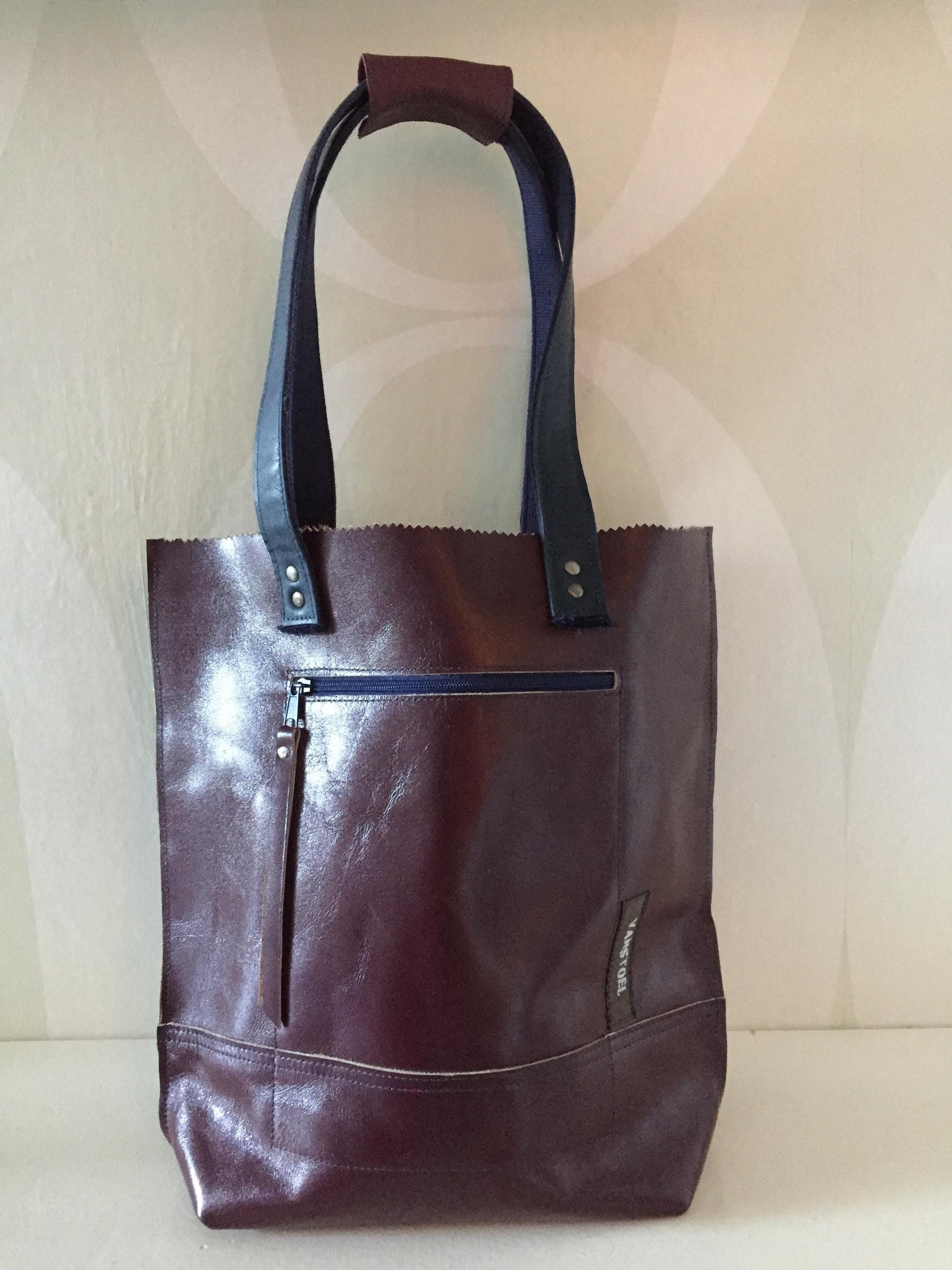 Stevige Shopper van Leer VanStoel#272 AUBERGINE | Handgemaakt van HERGEBRUIKT leer